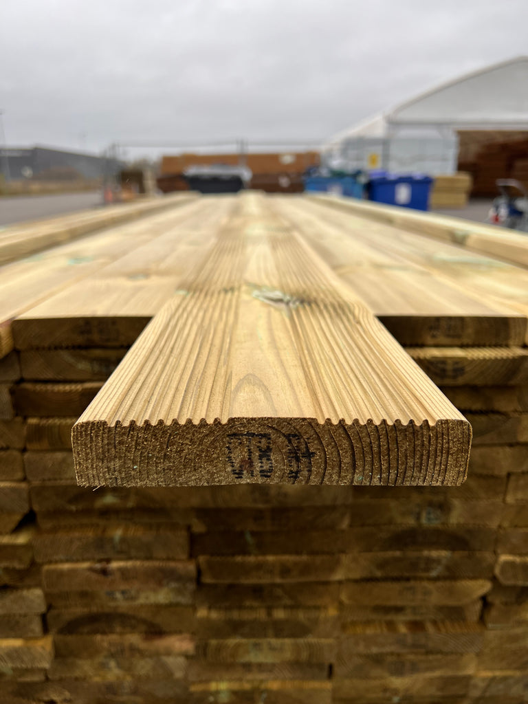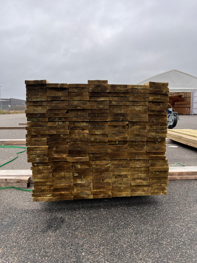 Tryckimpregnerad rillad trall 27x145 3,60 m – 206 st (B-sortering)