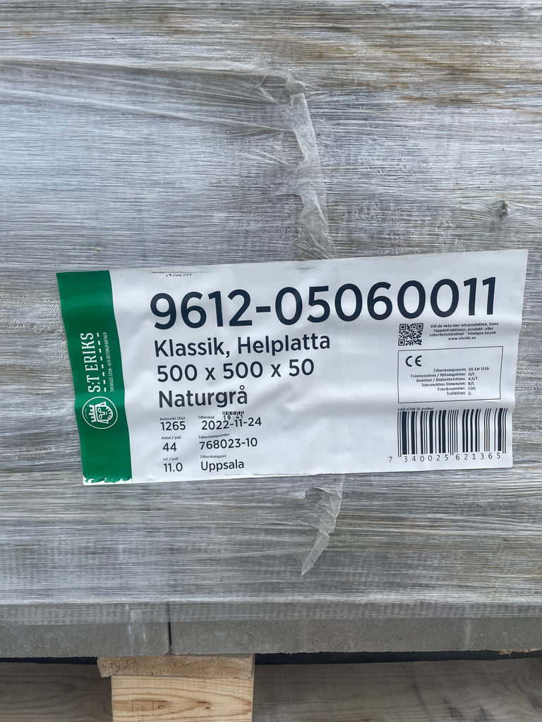 Betngplatta St Eriks klassikplattan 500x500x50mm naturgrå