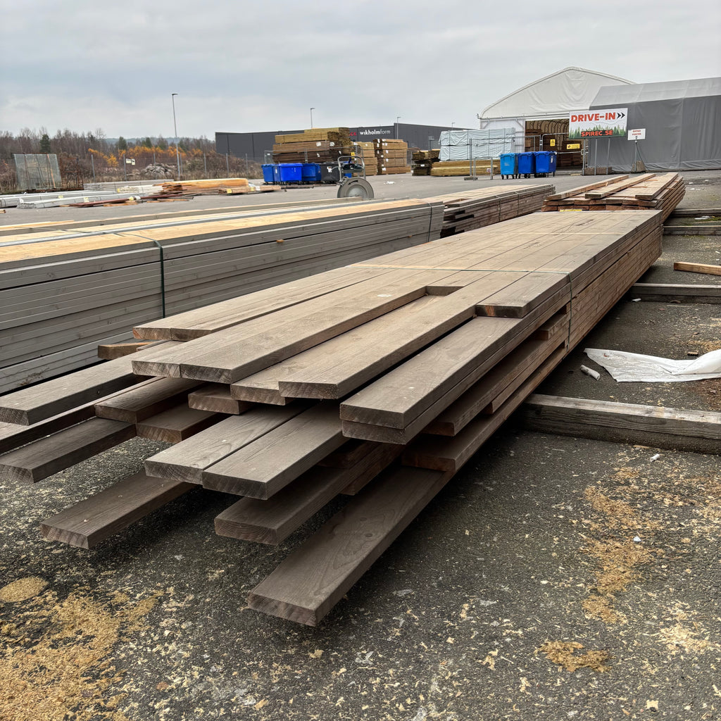 Paket Brädor Rundhyvlad 34x145mm – 70 st (3,6–5,4 m, Obehandlad Gran)